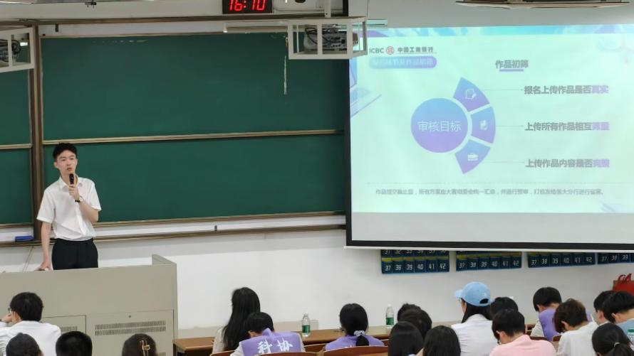 9月24日下午,第十六届“工行杯”全国大学生金融科技创新大赛宣讲活动在扬教3306成功举办。