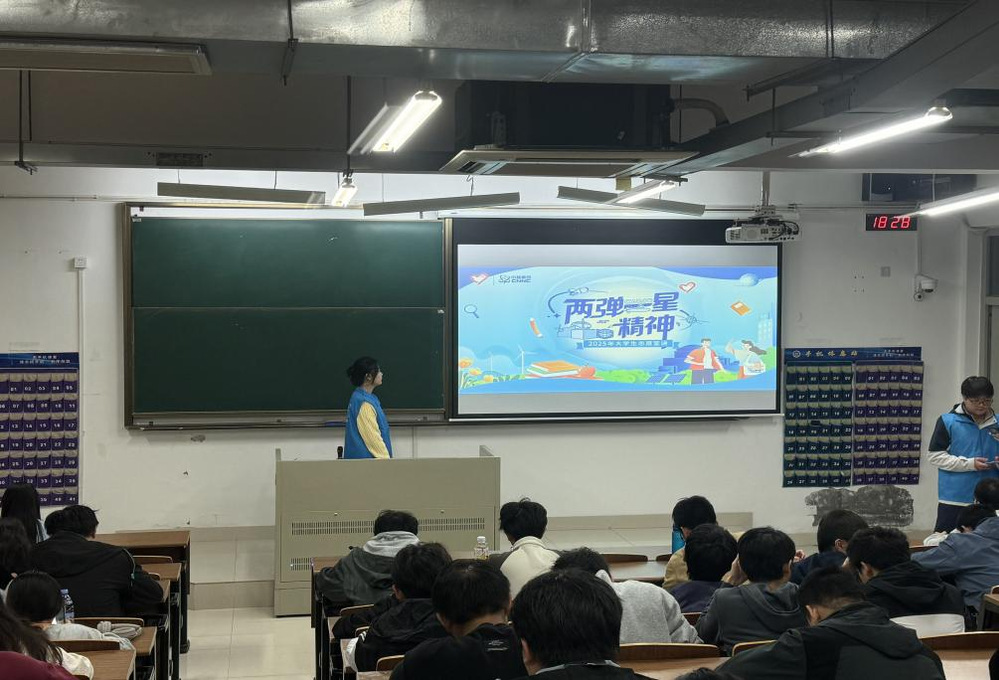 10月25日晚上,我院“两弹一星”精神志愿宣讲团于扬教3203开展第五次“两弹一星”精神志愿宣讲会,校科协创业赛事部副部长梁文担任宣讲人,我院130余名学生参与。