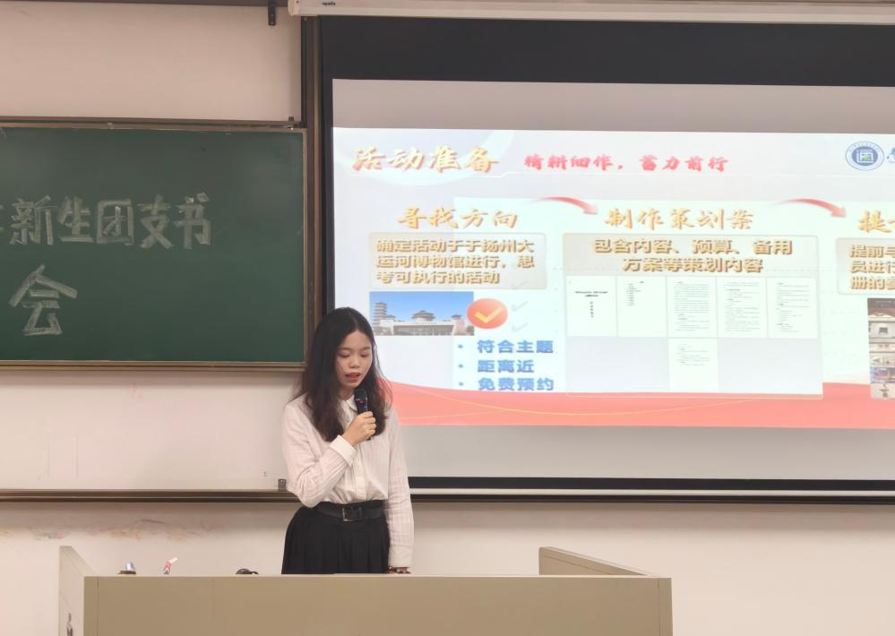 11月19日下午,我院2025-2026学年新生团支书培训大会在扬教3202顺利召开,本次会议邀请了电气工程学院辅导员陈思涵老师给大家做基础团务专题培训。出席本次活动的有团委老师王婧、优秀团支书代表以及全体新生团支书100余人。