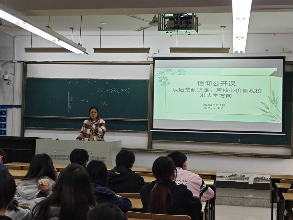 11月3日,通信工程学院于扬教1206顺利开展“从迷茫到坚定:用核心价值观校准人生方向”信仰公开课。本次课程由辅导员李义主讲,2023级学生参与。