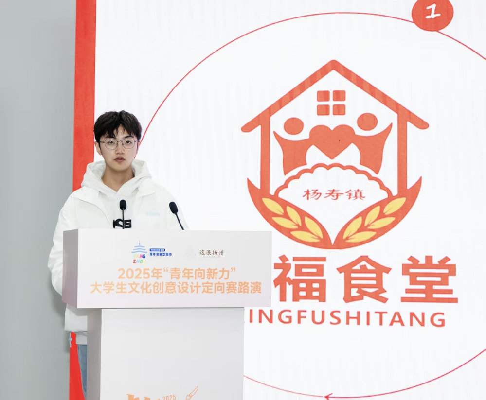 12月12日,2025年扬州市“青年向新力”大学生文化创意设计定向赛路演活动在朴席镇圆满落幕。我院“暖杨食光队”的杨寿镇人民政府“幸福食堂”品牌logo设计项目,斩获“最佳乡土融合奖”,用青春创意架起传统文化与乡村服务的桥梁。