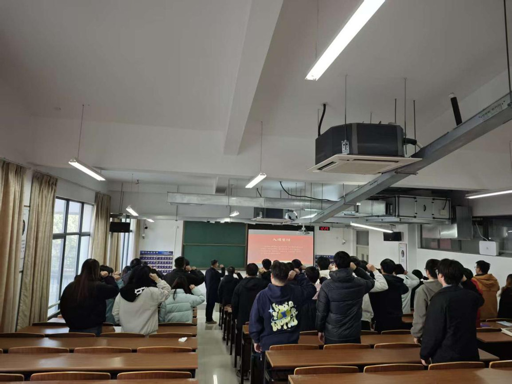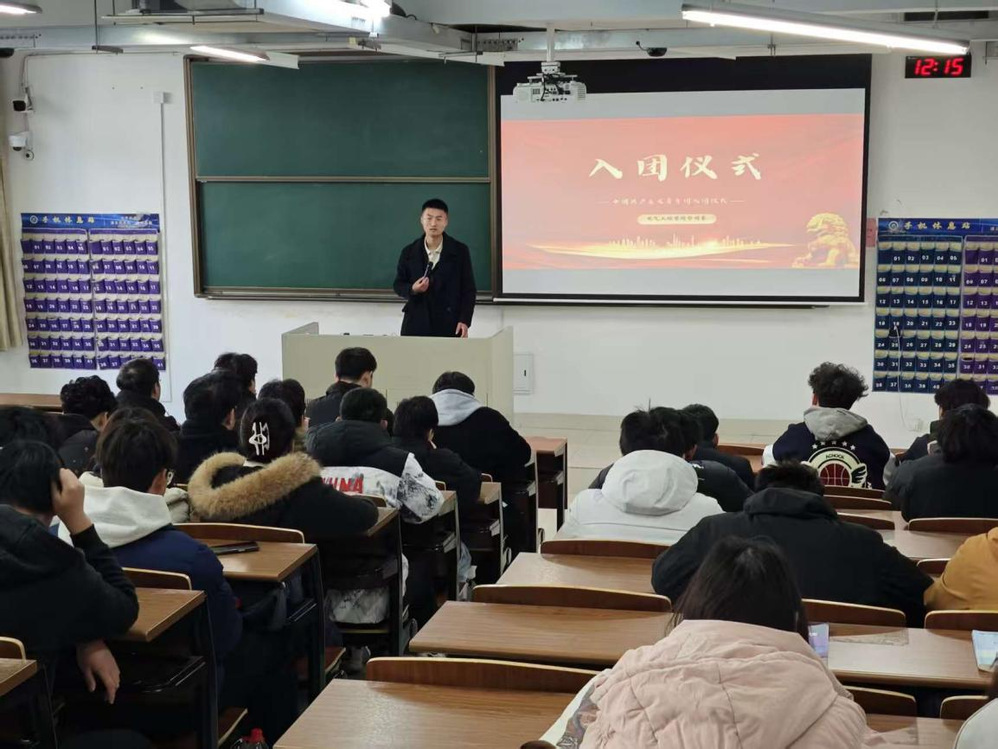 入团仪式在庄严的国歌声中拉开帷幕。刘阳老师在入团仪式上宣读2025年下半年新发展团员的名单,并向他们颁发团徽和团员证。宣誓礼环节,刘阳老师带领新团员们高举右拳,面向团旗庄严宣誓。最后,他勉励新团员:一要坚定理想信念,筑牢思想根基,始终听党话、跟党走;二要勤学善思,练就过硬本领,在专业学习中追求卓越;三要勇于担当,服务同学、奉献社会,以实际行动践行“请党放心,强国有我”的青春誓言。