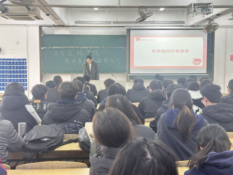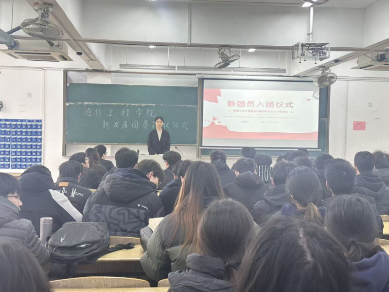 为加强共青团组织建设,传承红色基因,引导青年学生坚定理想信念,12月4日,通信工程学院2025年下半年新团员入团仪式在扬教1208教室举行,仪式由通信工程学院分团委学生副书记主持,分团委书记张梦雪和全体新团员参加。