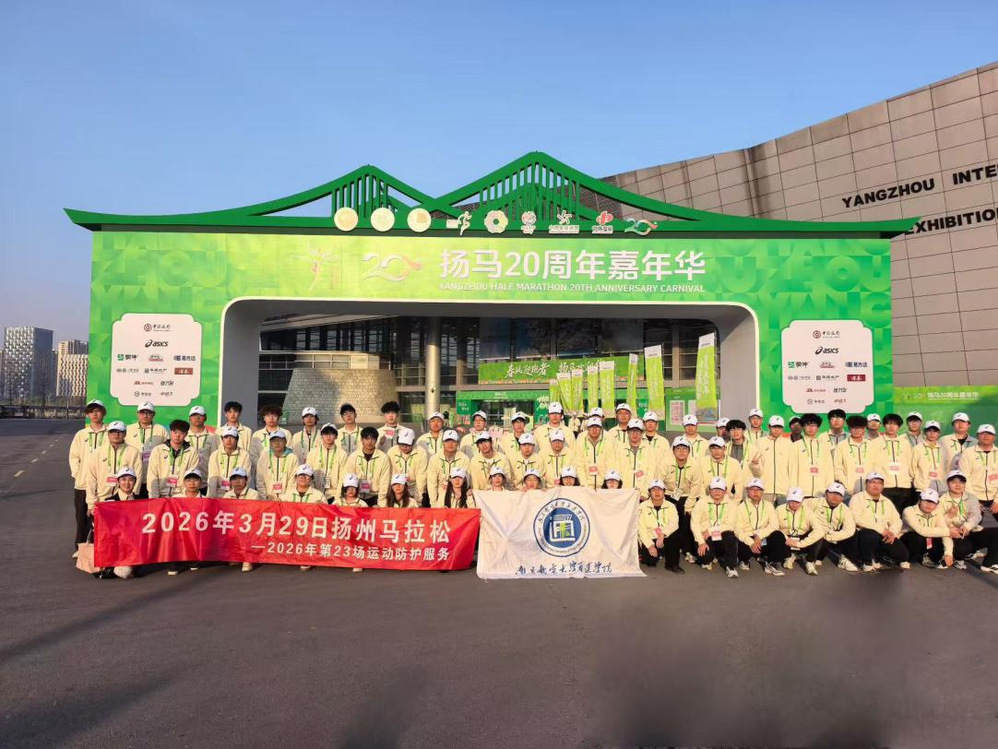 3月29日上午,2026中国银行扬州半程马拉松比赛在市民中心广场鸣枪开跑。作为世界田联白金标赛事,本届扬马吸引了数万名跑者齐聚“中国运河第一城”,在春日赛道上感受扬州的人文底蕴与城市活力。在这场备受瞩目的赛事中,我院197名志愿者奔赴现场,用热情与专业筑起坚实的服务保障线。